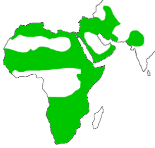 คาราคัลอาศัยอยู่ในพื้นที่แห้งแล้ง อดทนต่อสภาพที่อยู่อาศัยหลายประเภท พบในป่าวูดแลนด์ ซะวันนา และป่าละเมาะอะคาเซียทั่ว ทวีปแอฟริกา พบได้บ่อยในป่าที่ชุ่มชื่นใกล้ชายฝั่งเหนือทะเลทรายซาฮารา และยังพบในทะเลทรายของอินเดียด้วย แต่ไม่พบในป่าฝนเขต ร้อน อยู่ได้สูงถึง 3,000 เมตร